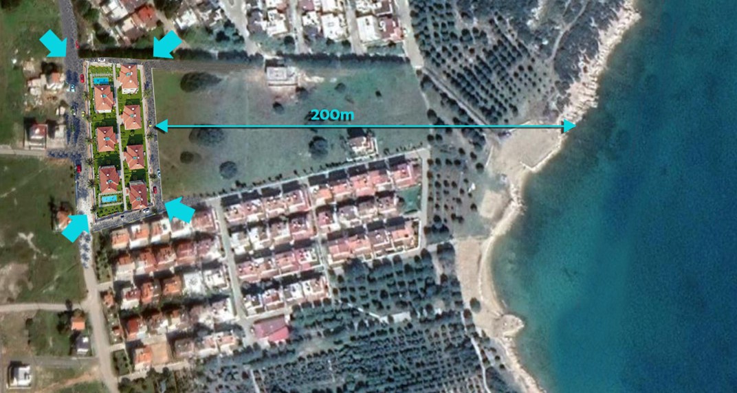 Toplam 28 adet 2+1 odalı daireler , Kocareis plajına 200 m mesafede olup iskanı alinmiş, kullanıma sunulmuştur.