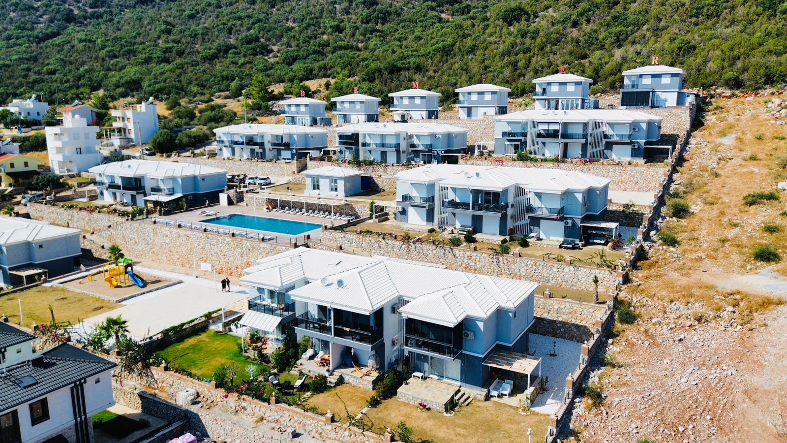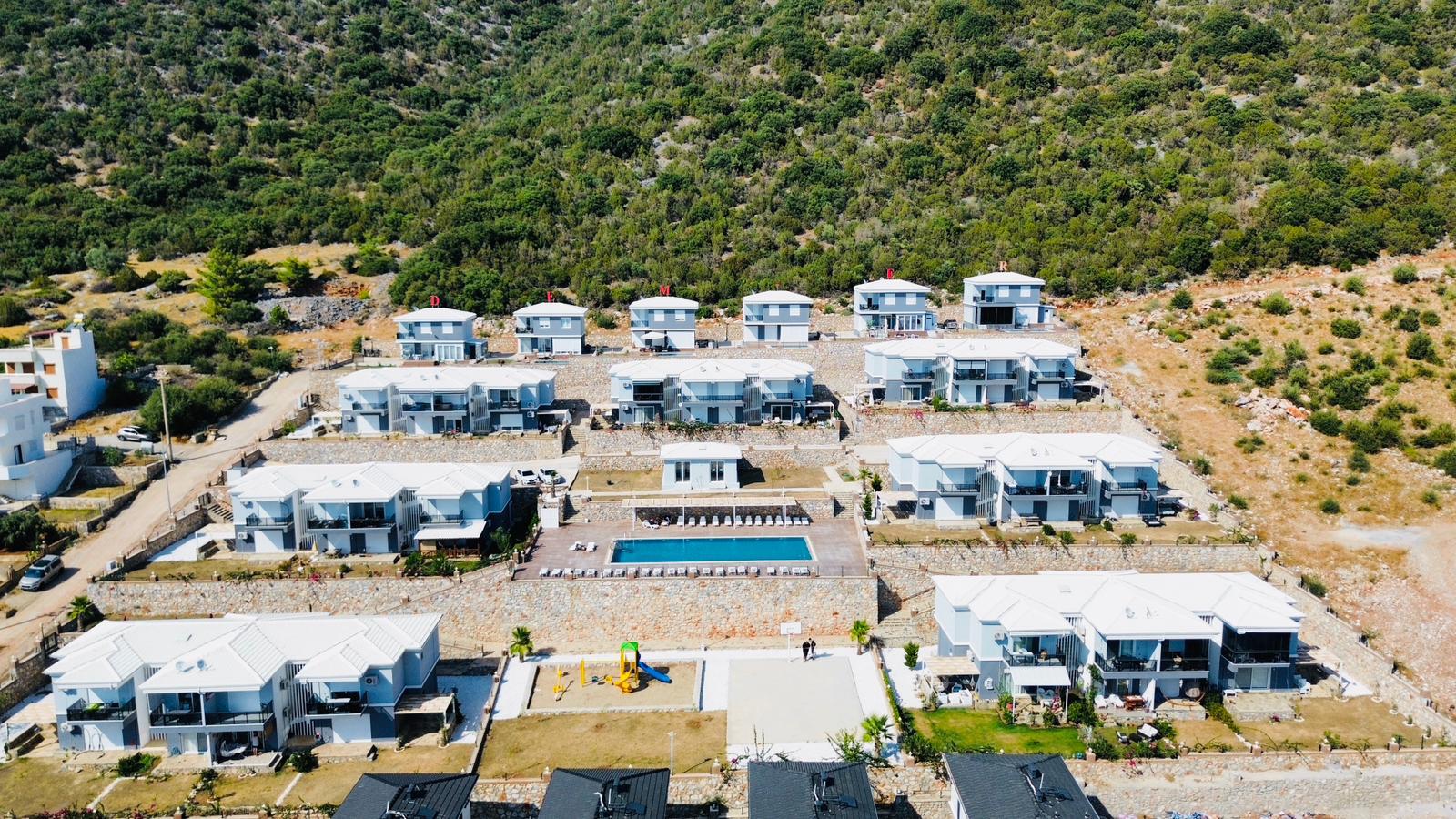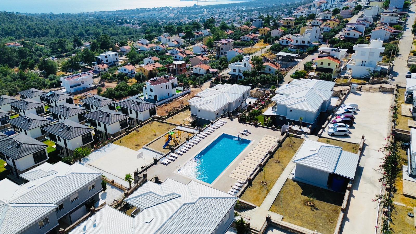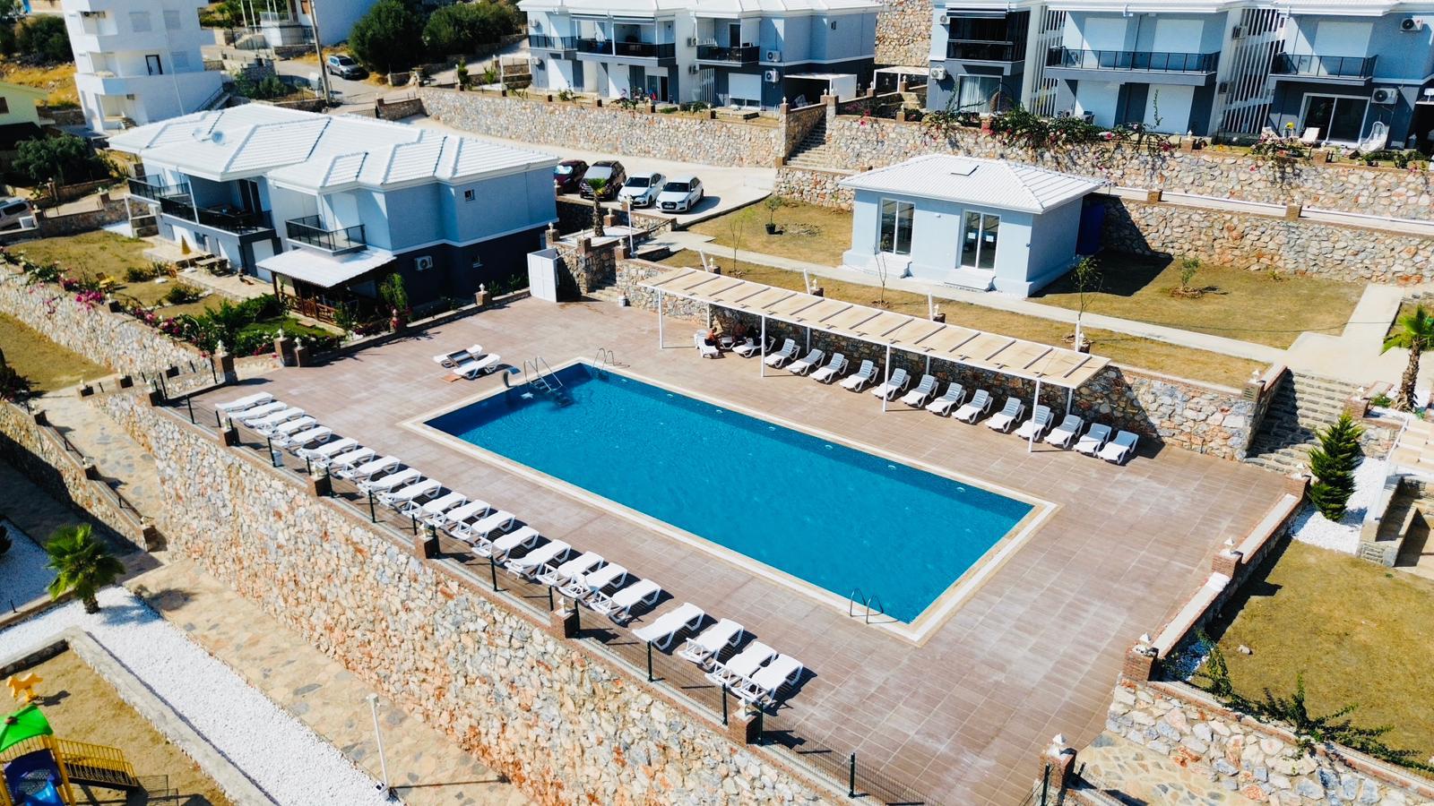 Deniz'e 2 km mesafede full deniz manzaralı eşyalı, güvenlikli otoparklı çocuk oyun parkı basketbol sahası 7/24 güvenlik kamerası havuzlu.